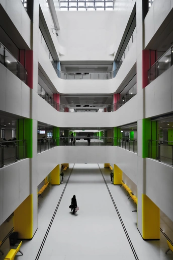 春季病毒多发,娃感染了诺如,带她去医院看门诊,发现这个新院区的建筑点缀着斑斓的色彩,或许这就是孩子眼里的世界,充满了缤纷色彩,即使生病不舒服,也会以最和善的眼光打量这个世界。