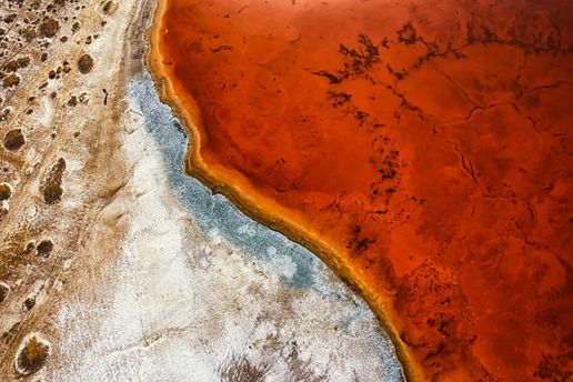 沙漠和盐湖是好朋友,相守相伴。 构图上,采用高角度俯拍,将红湖与岸滩的界限清晰划分,蜿蜒的岸线如自然的笔触,引导视线在红湖的纹理与岸滩的斑驳间游走。画面疏密有致,红湖的浓烈与岸滩的荒芜形成强烈视觉对比,让自然的层次感与张力尽显。 色彩上,炽热的红湖与浅白、土黄的岸滩撞出浓烈对比,红湖的深红与浅橙渐变,似大地燃烧的火焰,岸滩的素色则如沉静的画布。冷暖色调交织,既凸显了红湖的热烈,又衬出岸滩的荒芜,营造出震撼又神秘的氛围。 情感层面,这张照片藏着自然的野性与孤寂。红湖的浓烈似在诉说生命的炽热,岸滩的荒芜又透着岁月的沉静,让人在震撼中生出对自然的敬畏,也在孤寂的画面里,读懂大地的沉默与力量。 主题上,以红湖与岸滩的碰撞为核心,展现自然造物的神奇。红湖的独特色彩与岸滩的荒芜地貌,是自然力量的见证,它用画面讲述着大地的故事,让观者窥见自然的多元与壮阔。 艺术价值在于,将自然的偶然之美定格为永恒。浓烈色彩与独特地貌的组合,打破常规视觉认知,既保留了自然的野性,又赋予画面抽象艺术感,让每一处纹理都成为自然创造力的证明。