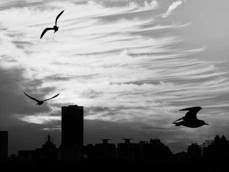 当钢筋水泥织就城市的肌理,总有一群飞鸟,用翅膀在黑白光影里写下自由的注脚。 它们是掠过天际的墨点,在流云与楼宇间舒展姿态;是停驻在电线上的音符,把喧嚣谱成安静的和弦;是屋顶边缘的剪影,与建筑的棱角共守晨昏。 在黑白的滤镜里,羽毛的纹理被放大,翅膀的弧度被定格。每一次振翅,都是对束缚的温柔挣脱;每一次驻足,都是与城市的温柔对话。它们不被街巷定义,不被高楼框限,在方寸镜头里,活成了最自由的模样。 这是属于城市的飞鸟诗,也是我们心底未曾熄灭的向往——在拥挤的世界里,依然保有向上飞翔的勇气。