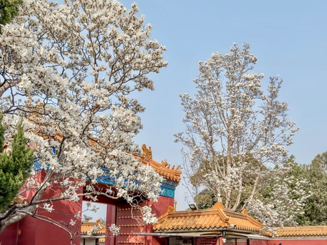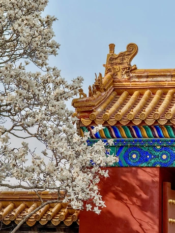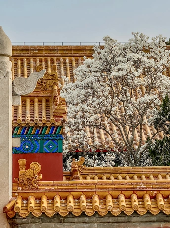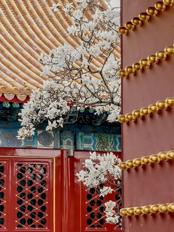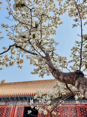 地坛公园皇祇室,玉兰开的正好,红墙金瓦映着满枝繁花,把中式浪漫衬得淋漓尽致。古殿的庄重遇上春日的温柔,风一吹,花瓣似雪飘落,连空气里都是淡淡的清香,每一帧都像从画里走出来的一样。
