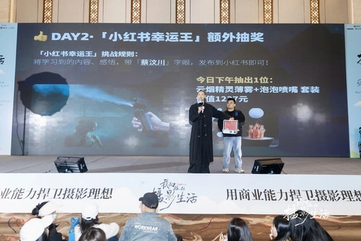 现场品牌阵容火力全开,不仅为摄影师们提供了丰富的器材试用与面对面交流的机会,也带来了丰富的奖品支持。从体验到互动,氛围持续升温。活动尾声的抽奖环节,更是将两天积累的热度一举点燃。恭喜所有获奖的摄影师,愿这些新装备成为你们创作路上的加速器,拍出更多令人惊喜的作品。