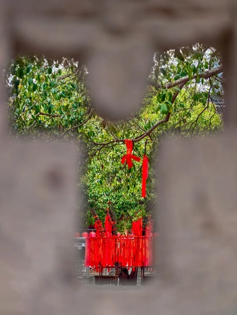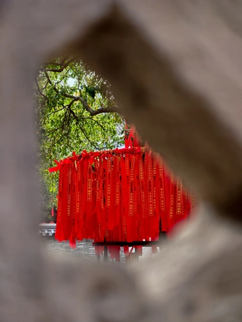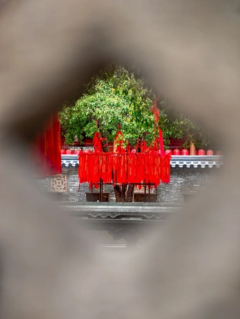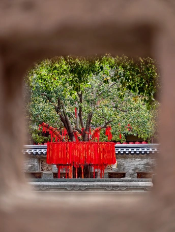 石窗为框,红绸为语。 一孔之间,藏着满树祈愿与人间烟火。 风掠过枝叶,带着平安、顺遂与期盼,在青砖黛瓦间轻轻摇晃。 用vivo定格这方寸里的红,把最朴素的祝福,藏进每一缕光影里。 愿这抹中国红,能护得岁岁安康,万事顺遂。 #vivo摄影 #框住美好 #祈福树 #人文纪实 #中国风 #古风摄影