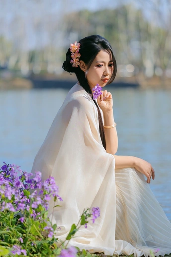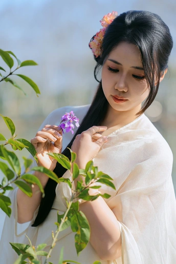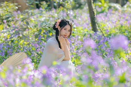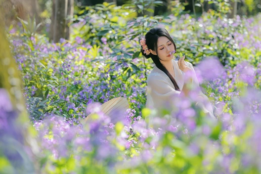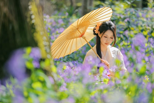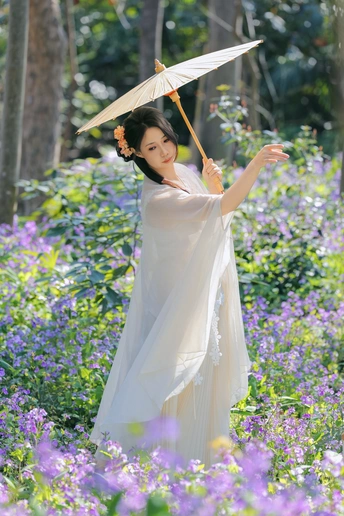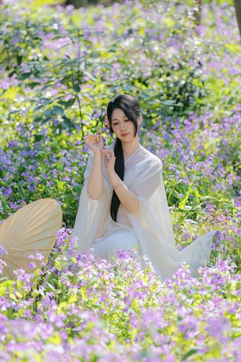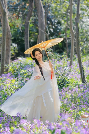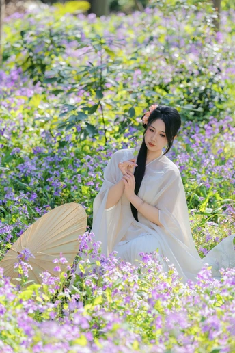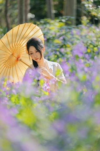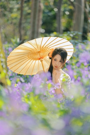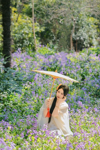 《灵谷兰时》 二月兰香漫紫烟,三春女子立花前。 素衣不染风尘色,油伞轻遮灵谷天。 钟磬无心空对月,芳华有意且随缘。 回眸恰被流光锁,一帧南朝入画笺。 模特:鱼游儿 摄影:许摄 器材:佳能R62+RF70200 2.8