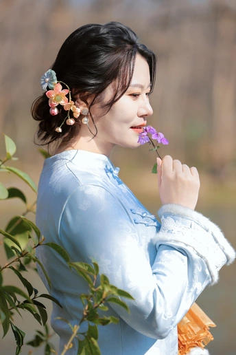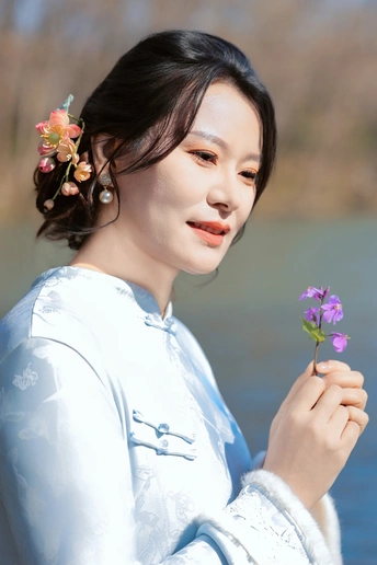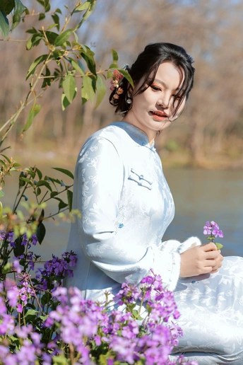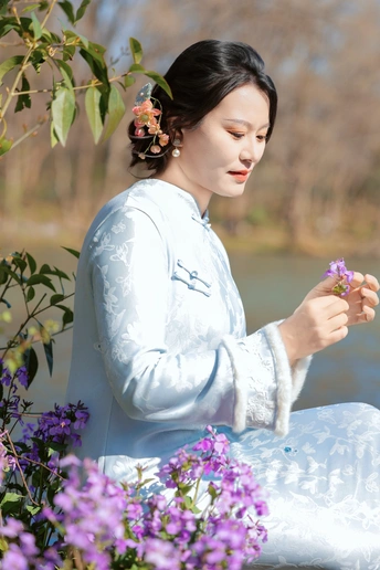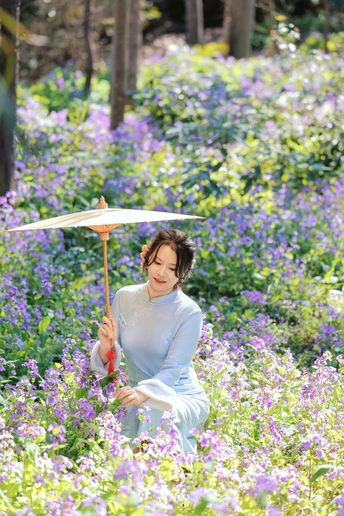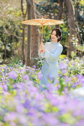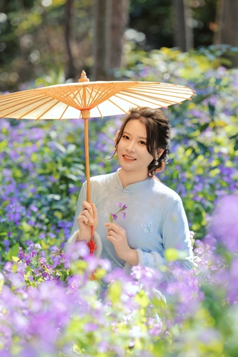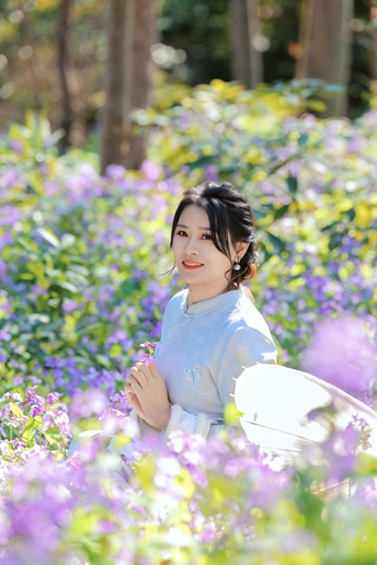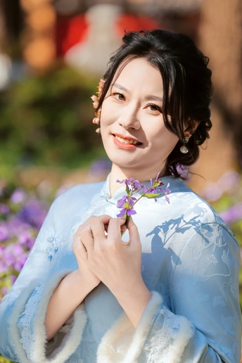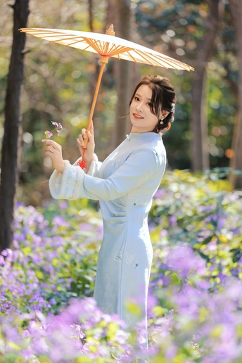 《灵谷春衫》 三月灵谷寺,春染二月兰。 淡蓝旗袍斜倚处,风动暗香缠。 眸含千峰翠,影落碧云间。 谁道仙姿画不成?回眸一笑,已胜画中禅。 模特:浅陌初心 摄影:许摄 器材:佳能R62+RF70200 2.8