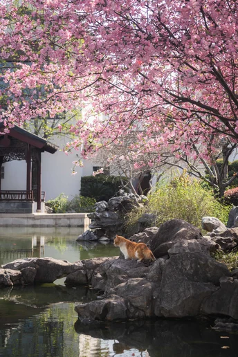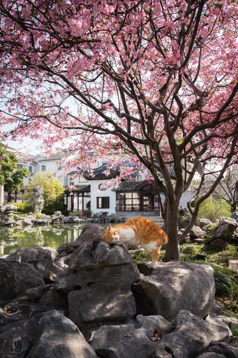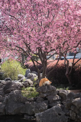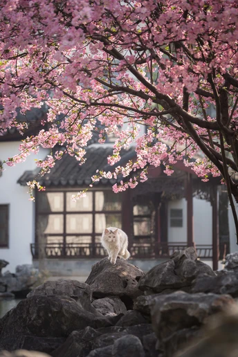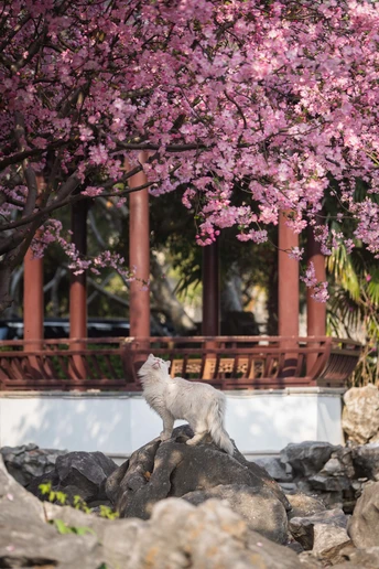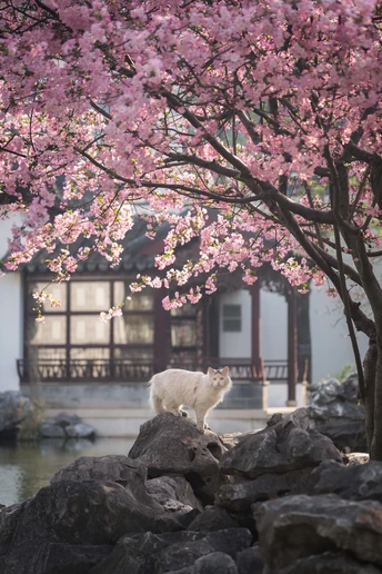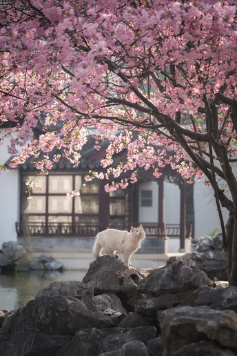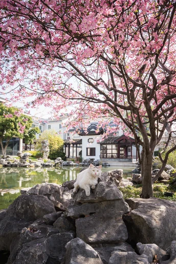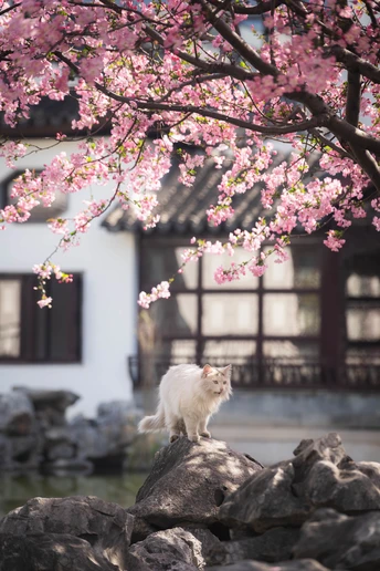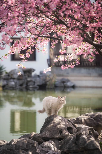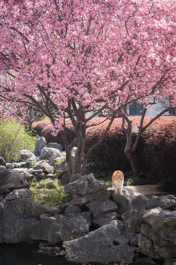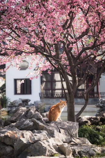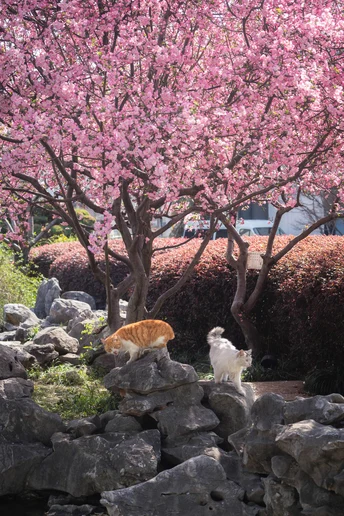不负春光,海棠配咪。超级配合的小两只