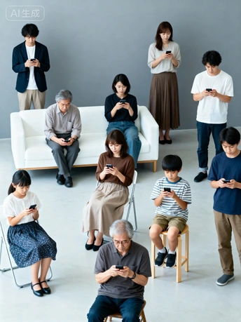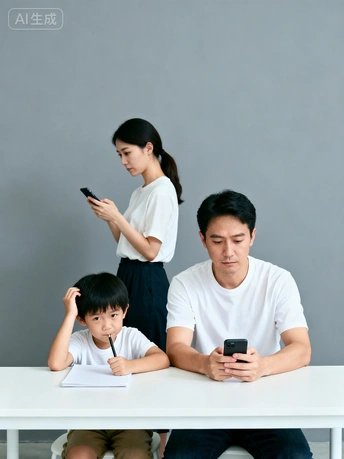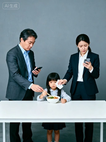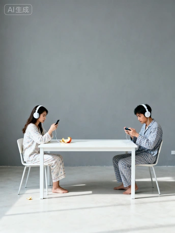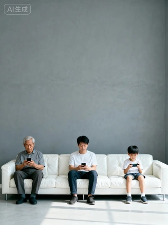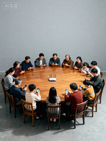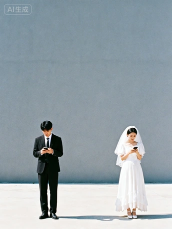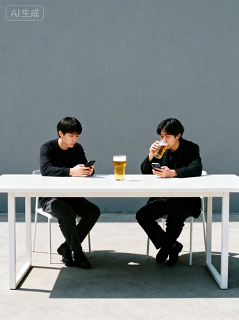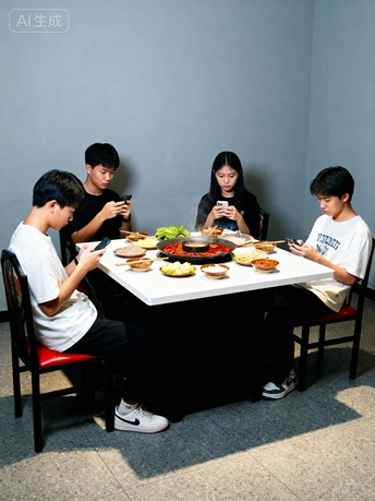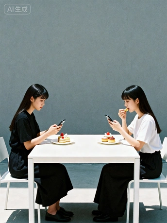 《庄子·外物》有云:“泉涸,鱼相与处于陆,相呴以湿,相濡以沫,不如相忘于江湖。” 古人以“泉涸之鱼”比喻身处困境的生命,唯有以微薄的湿气相互滋润、以唾沫相互沾湿,方能维系生存。这份在绝境中迸发的情感连接,是生命最本真的渴望与力量。而今,我们正置身于一场数字时代的“泉涸”之中。 《泉涸之鱼》作品通过文字描述生成AI图像,但并非对ai技术的挽歌,而是一面映照现实的镜子,是对当代困境的视觉隐喻。我们并未身处无水的荒漠,却沉溺于指尖方寸屏幕所汇成的数字洪流,我们从未如此“互联”,却在本应最亲密无间的时刻,陷入前所未有的孤岛。当我们贪婪地吮吸着虚拟世界的“湿气”时,是否正任由现实关系中最后的情感之水悄然干涸?