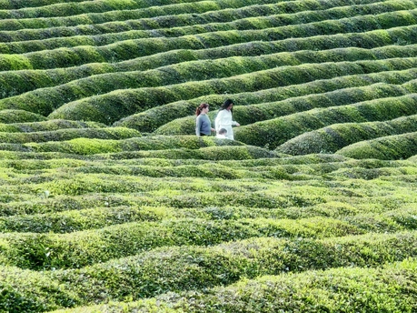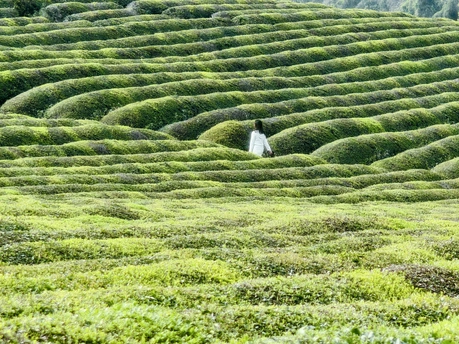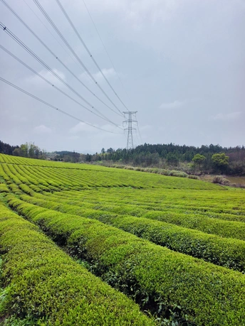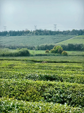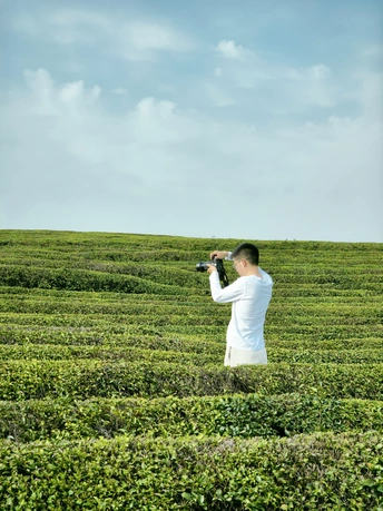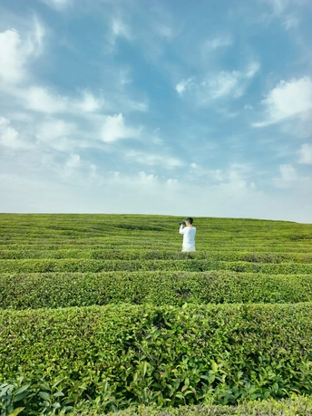 南昌连绵近一个月的春雨实在让人难以真切地感受春天。然而,今天,清明这天,天气难得地晴了。这怎么能忍住不出去踏青,不出去拍照呢? 到了这个千亩茶园,我才真正明白什么叫“铺天盖地的绿”。茶树一垄一垄,整整齐齐地顺着山坡爬上去,像一块巨大又柔软的地毯,一直铺到天边。天是那种透亮的淡蓝,干干净净的,偶尔飘过几朵懒洋洋的云。这蓝和绿配在一起,真是绝了,不用加任何滤镜,镜头里就已经是满满的生命力。 今天,也许我拍到我的手机壁纸。