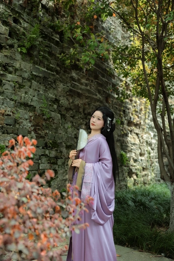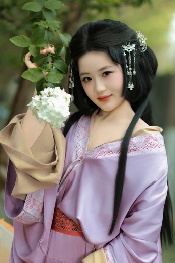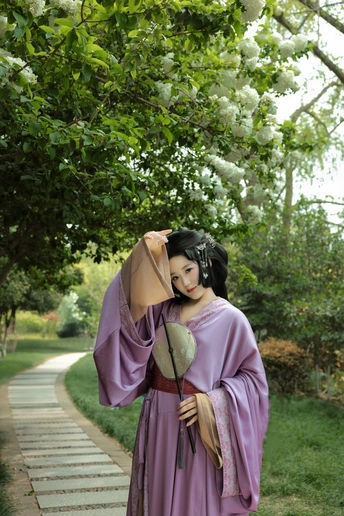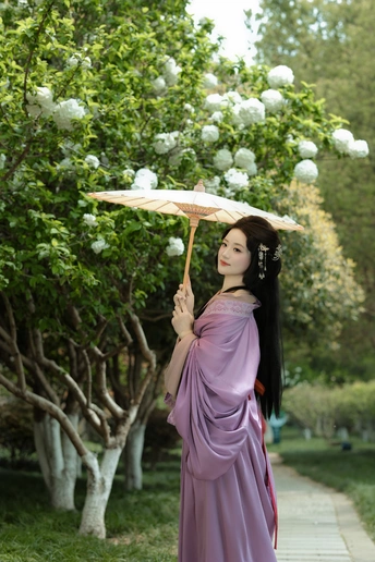四月初的南京,富贵山登城口,白色绣球花开得正好。 石阶斑驳,春阴微凉。小唯造型的美人一袭紫色战国袍,广袖低垂,立于花前。白色绣球纯净如雪,衬着袍服的浓郁复古,像一阙未写完的宋词。 没有多余的情绪,只有光影在眉眼间流转。这是属于她的写真——复古,沉静,带着穿越时光的雅致。 紫色与白色,古风与花事。4月的金陵,最美的相遇。 模特:伊翔 摄影:许摄 器材:佳能R52+RF24-70 2.8+85 1.4