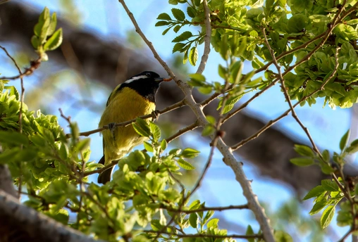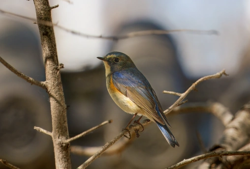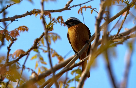 春迁的鸟儿们 黄腹山雀吃虫 红胁蓝尾鸲和北红尾鸲在灌木中蹦蹦跳跳