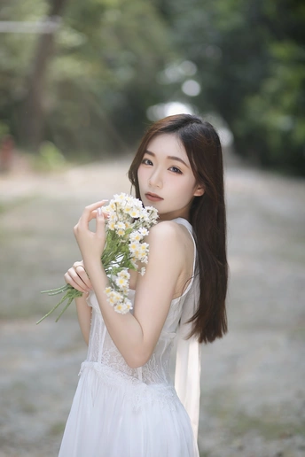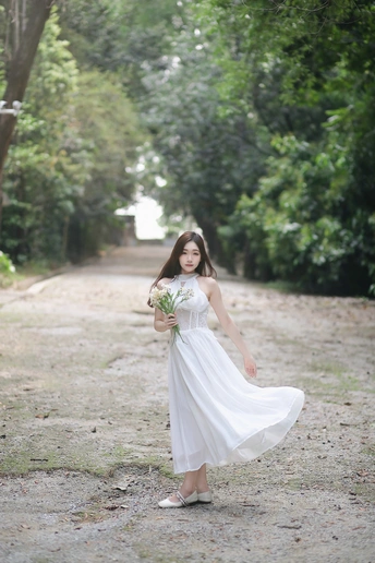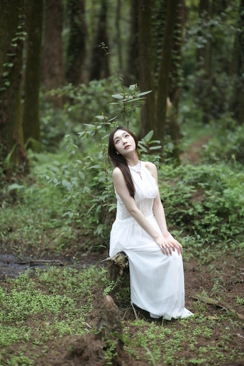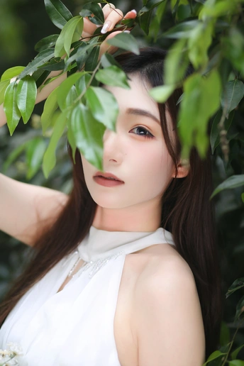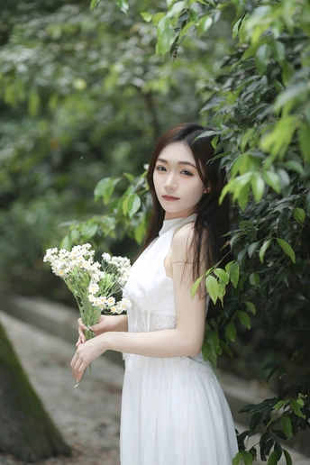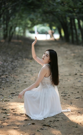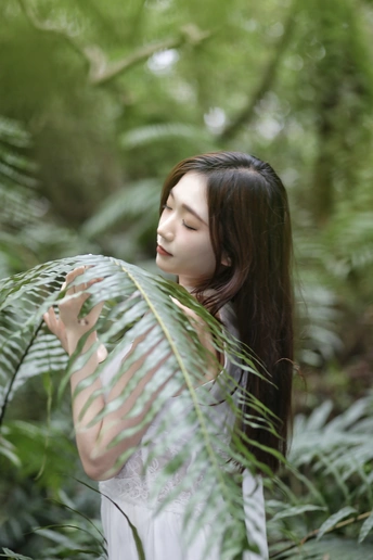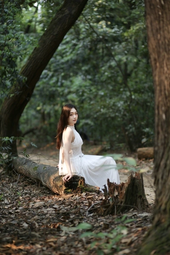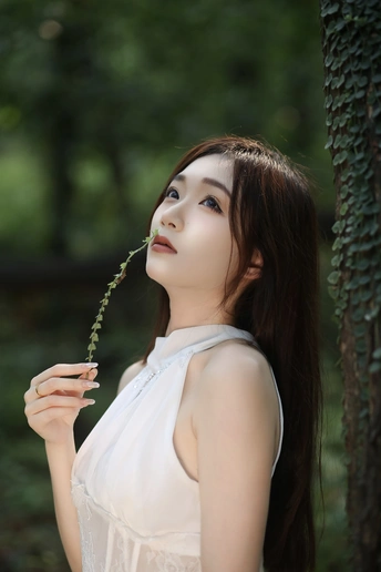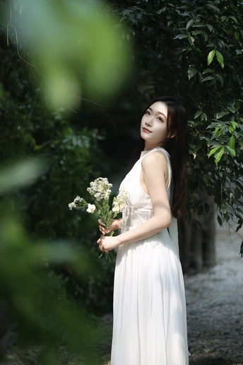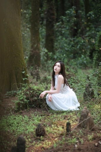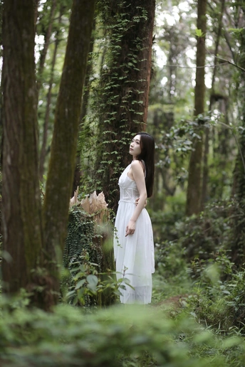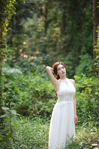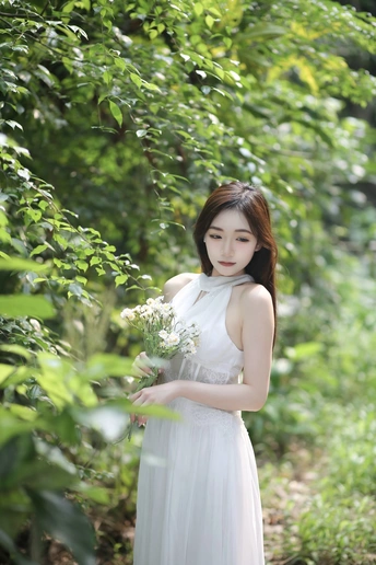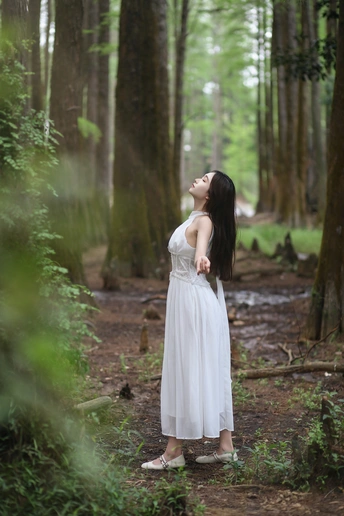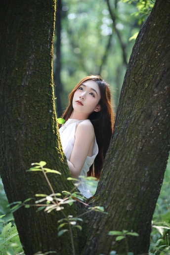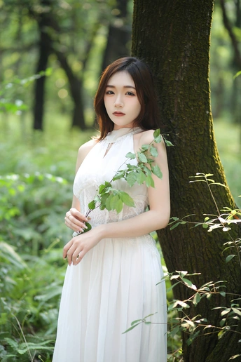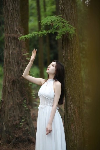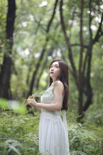 在绿意漫溢的林间,与温柔撞个满怀, 风穿过树隙,白裙轻扬, 每一寸光影都在诉说着自然的诗意。