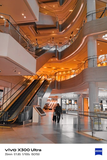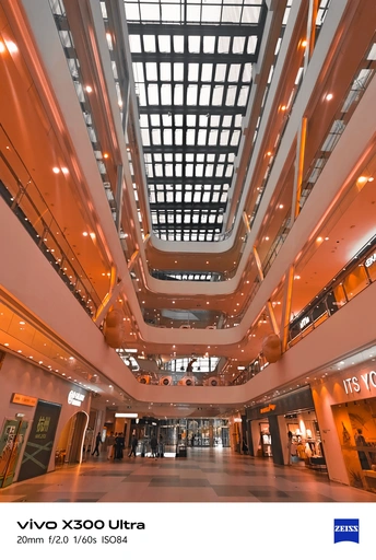 当暖橙光影漫过穹顶与回廊,商场便不再只是购物的场所,而是流动的建筑诗篇。 用vivo X300 Ultra的蔡司镜头,捕捉每一寸空间的韵律:20mm广角下,挑高中庭的纵深感扑面而来;35mm人文焦段里,扶梯的曲线、旋转木马的星光、亲子同行的暖意,都被温柔定格;230mm长焦则精准聚焦,让悬壶映火的细节分毫毕现。 从穹顶的天光到橱窗的暖灯,从童趣的小车到浪漫的花门,一帧帧画面里,是科技与美学的碰撞,是日常里被忽略的璀璨。用镜头发现,每一座商场,都是藏在城市里的光影剧场。 ? 拍摄设备:vivo X300 Ultra #vivo影像 #蔡司镜头 #城市建筑 #商场摄影 #光影美学 #手机摄影 #米拍创作