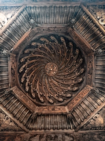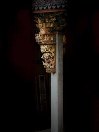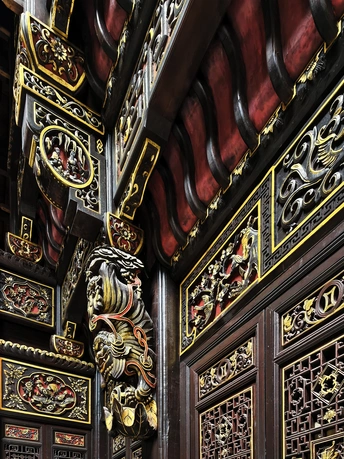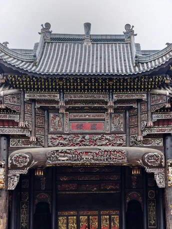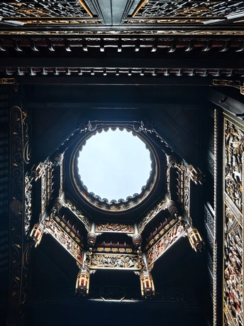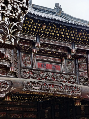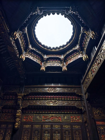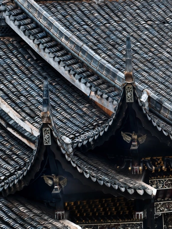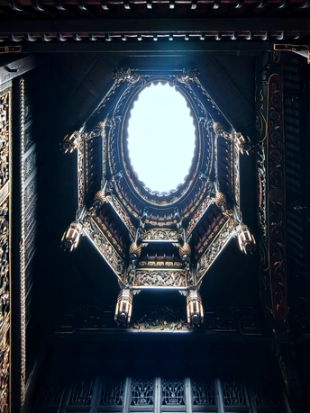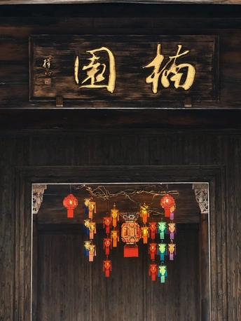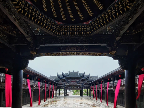 檐角藏云,木影含光 一榫一卯,皆是时光的温柔回响 天光穿过藻井,落在飞檐翘角 风过楠园,便把千年的诗意轻轻唤醒 黑瓦映古色,金漆描匠心 红绸系流年,光影写深情 不必言语,只静静站着 便懂东方独有的浪漫与从容