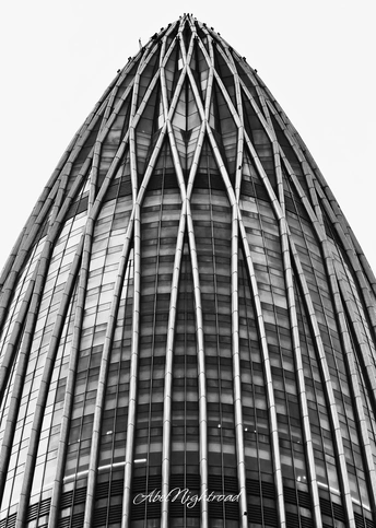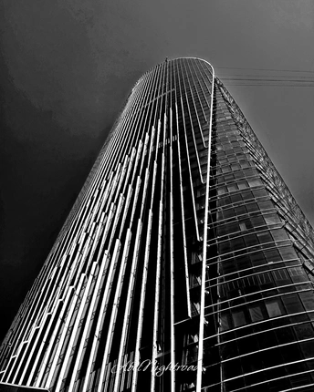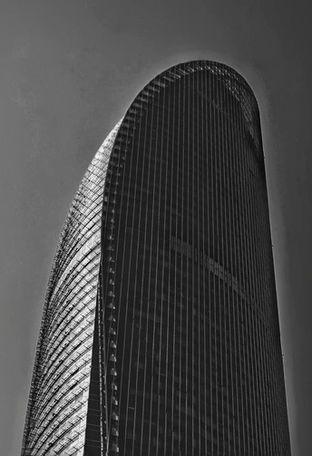 当色彩褪去,剥离了浮华,建筑便回归了本质:线条、结构、光影。仰拍的视角里,一座座摩天大楼组成现代文明的钢铁森林,以垂直的秩序对抗着大地的引力,或用冰冷的钢铁诉说着文明的野心,或用优美曲线写就中式浪漫的诗行