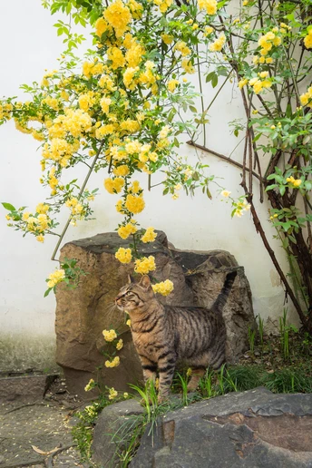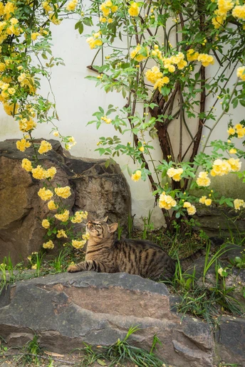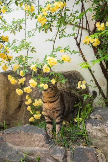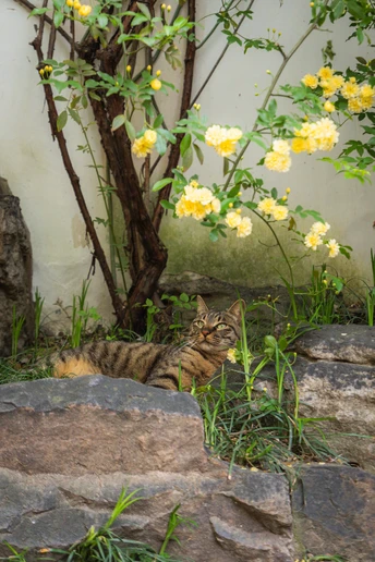 今年这颗木香有点稀疏,但是不影响小猫在里面躲猫猫