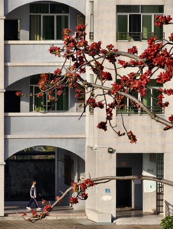 下午的阳光漫过教学楼,木棉花在枝头热烈盛放。少年走过花影下,时光温柔,岁月生香,这便是校园里最治愈的春日模样。