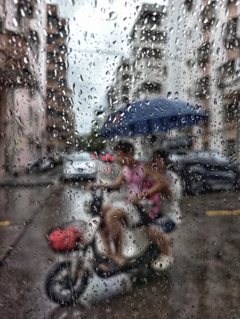雨落街巷,窗隔喧嚣; 行色匆匆,步履不停; 一帘雨幕,万般人间。