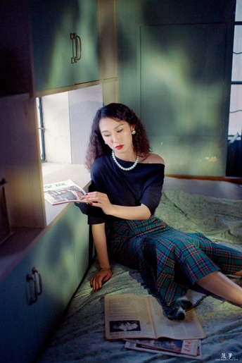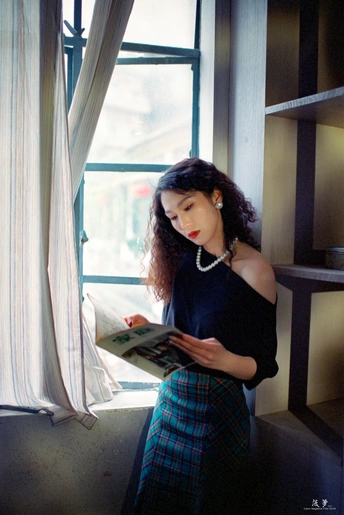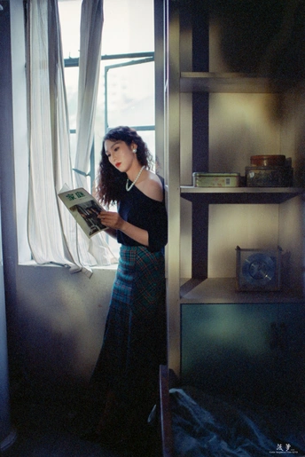 翻到一本泛黄的《家庭》杂志,忽然就跌进了90年代的旧时光里。绿丝绒沙发、斜肩黑衫,阳光落在发梢,连风都慢了下来。 出镜:文丹 配方:尼康F100|电影卷5219|尼康35/1.4G|手工冲洗(卤化一切ECN-2)|自扫描(Plustek OpticFilm 8100)