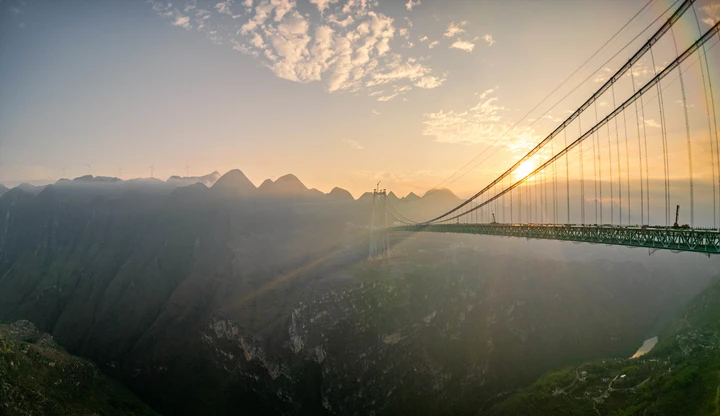 世界第一高桥“花江峡谷大桥”9月28日正式建成通车了。 这座桥有多厉害呢? 这座大桥全长2890米,主桥跨径达到了1420米,是目前世界山区峡谷第一大跨度钢桁梁悬索桥;其桥面距水面垂直高度625米,超越北盘江第一桥成为新的世界第一高桥。被称为“横竖”都是世界第一。 拍摄于2025年5月4日大桥建设时期。