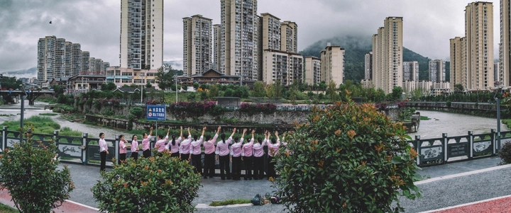 2025年10月1日,贵州省黔西南布依族苗族自治州望谟县县城,一大早一群布依族妇女盛装散步来到王母河畔。姐妹们欢乐的合影纪念国庆日。