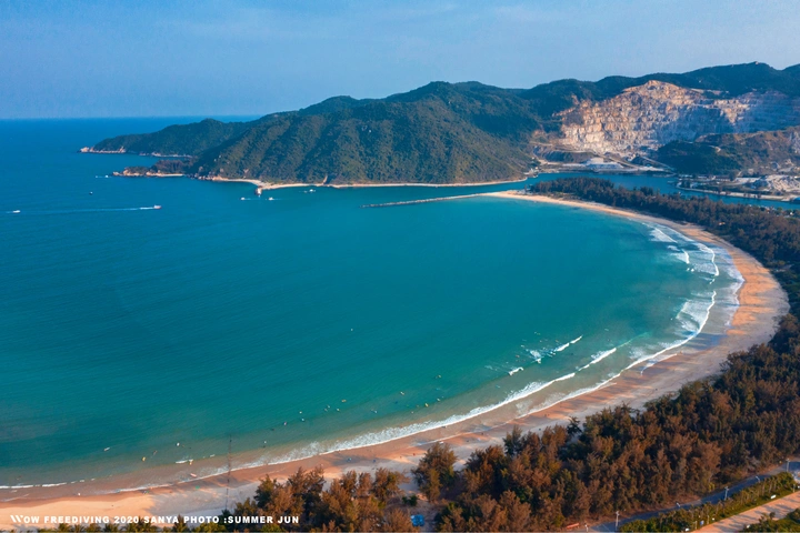 享受了片刻宁静后,我们来到了月亮湾海滩。据说,这是海南最后的处女湾,因为形似月牙儿而得名。纯净的天空下,湛蓝的大海与似棉花般松软的白沙滩相互陪伴。明明都在同一个水域,木兰湾与月亮湾给人的感觉却是不同的,身临其境才可觉察那差异。