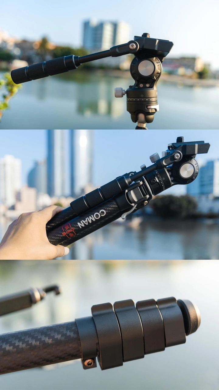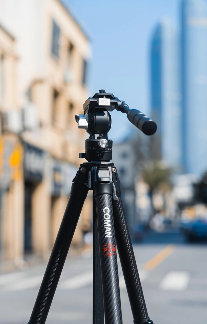 然后是这款三脚架是采用扣拉式的伸缩方式,比起传统螺旋方式我觉得更加方便和省力,缩短后整体拿在手上的颜值也非常的高,云台也是液压式的云台,对比之前的方式让我轻松了很多。