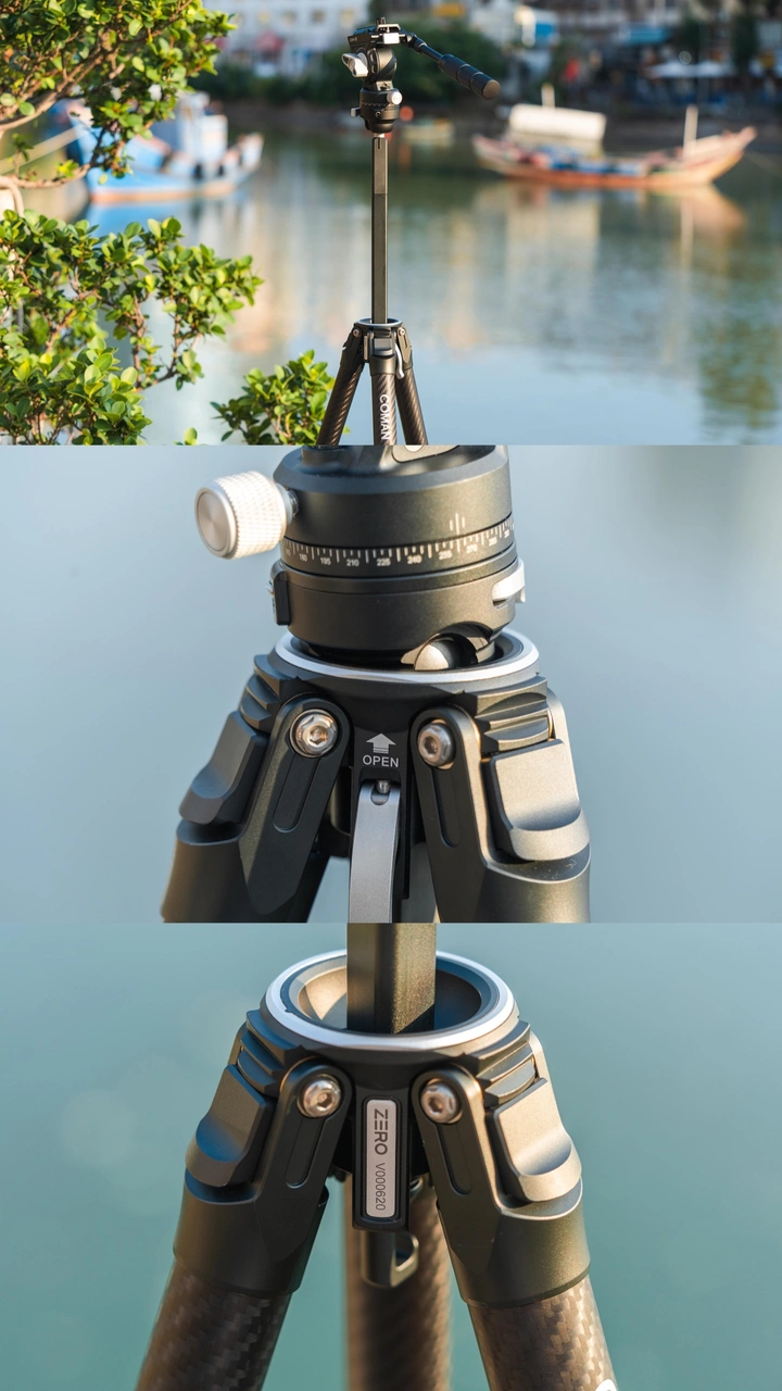 首先这款zero v是采用了碳纤维+铝合金材质制作而成,在保证了轻便性的同时也增加了它的抗风性,然后是这款三脚架在开出中轴的最高高度能够达到1.57米,不开中轴的高度是1.34米,最低高度是0.24米,完全可以容括日常所有拍摄需求。最近很有幸收到了米拍&科漫的三脚架评测,现在我就来给大家说一下这款三脚架最近对使用体验。