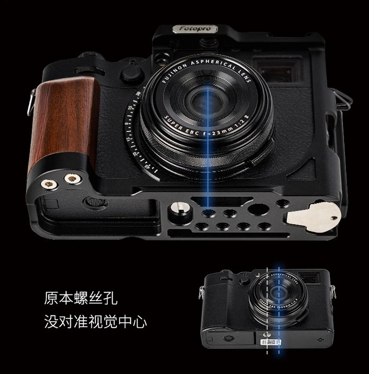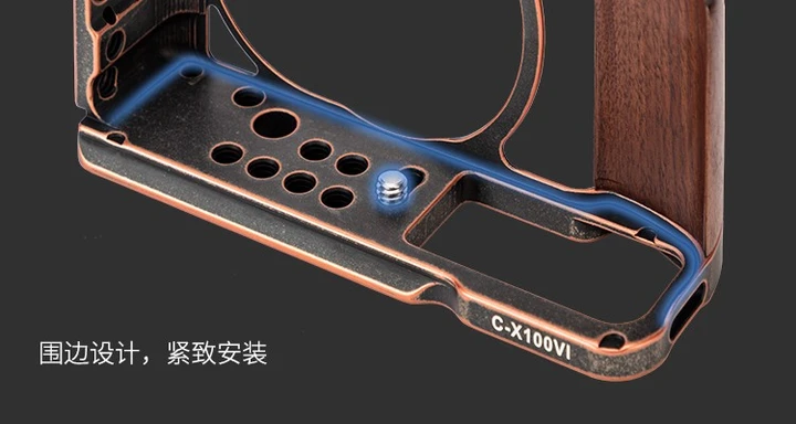 和「流光L型手柄QAL-X100VI」一样,「流光保护扩展框C-X100VI」底部也具有矫正视觉中心的螺丝孔,这样,上脚架就能精确地围绕视觉中心拍视频运镜或拍全景了。