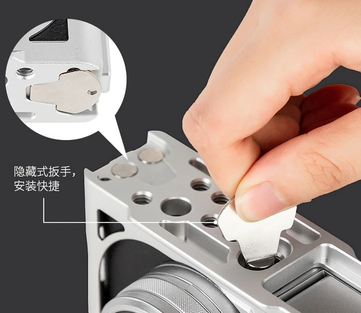 保护框精准避开了各个按钮、接口、对焦感应灯、闪光灯、翻转屏、电池仓位等,由于框只有右半边围住镜头,所以并不会挡到左手操作镜头调焦,使用各方面都很顺手。