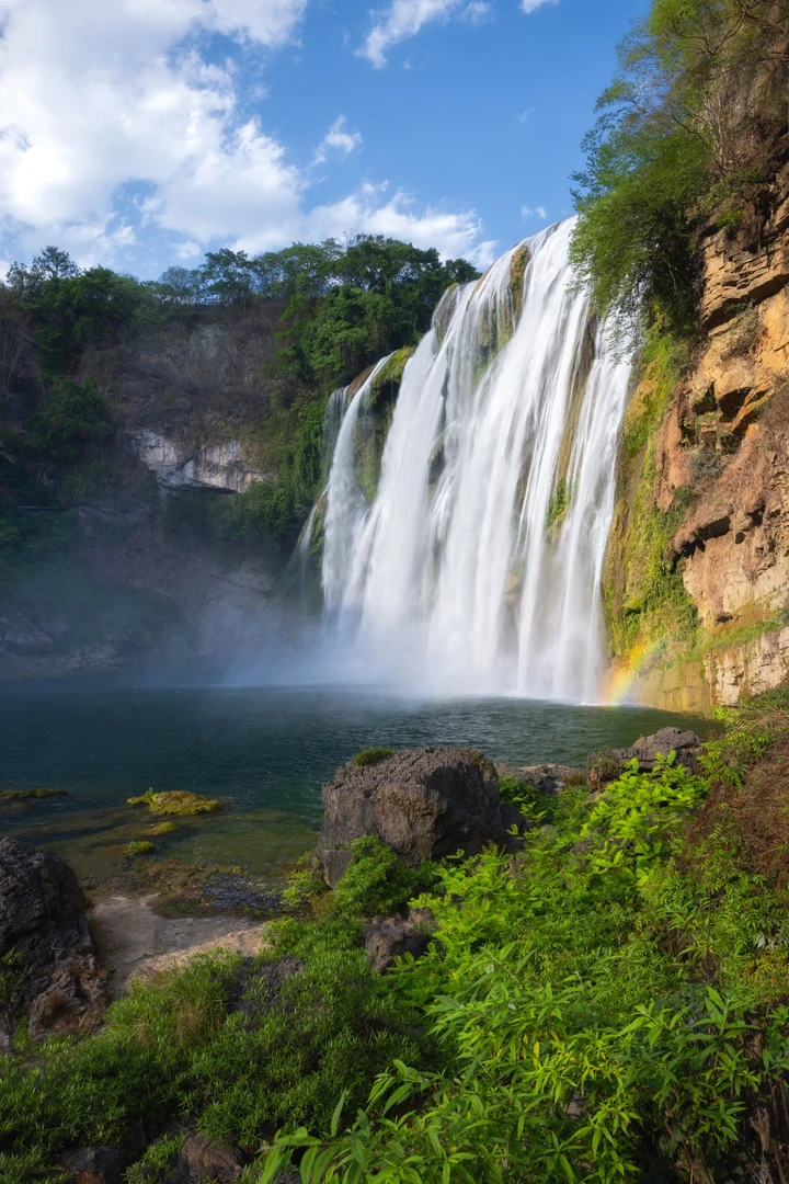 纵观世界名瀑林立,如此集中而姿态各异的瀑布群,则为我国黄果树所独有。作为小时候课本里最出名的三处自然景观之一(桂林山水,黄果树瀑布,张家界景区),过了这么多年总算亲临现场,这个季节不是丰水期,拍摄瀑布水流刚好合适。黄果树的拍摄光线和高原雪域并不一样,日出日落时刻并不会对展现瀑布起到提升,蓝天白云的明信片风格更适合黄果树瀑布。