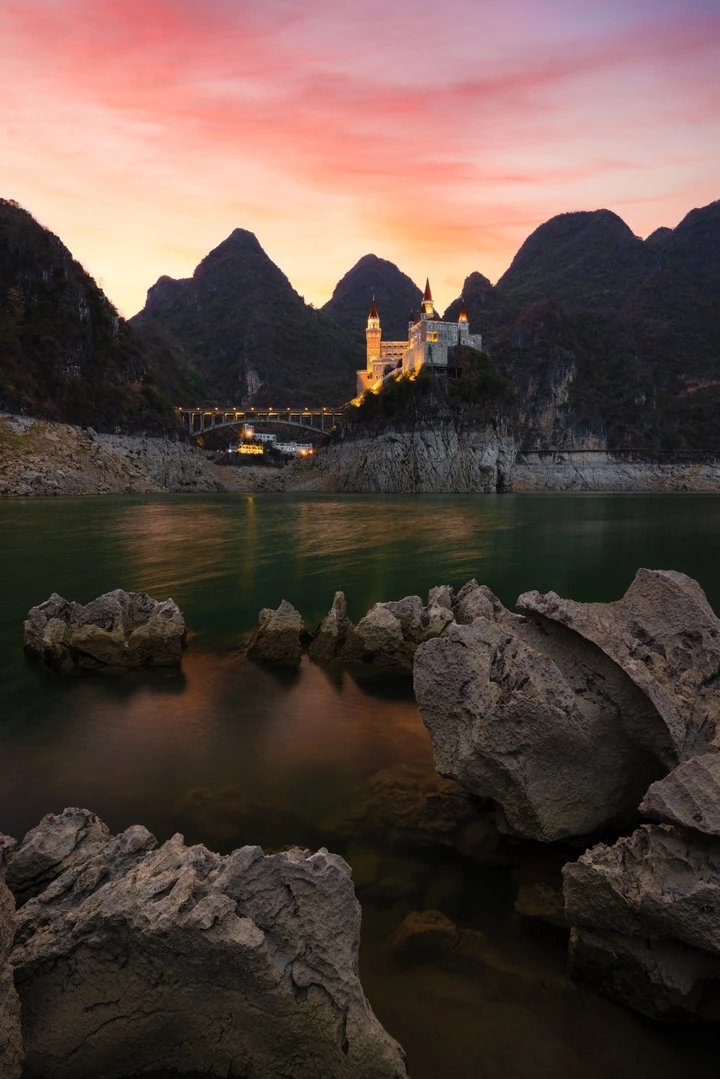 兴义市吉隆堡度假村位于兴义市万峰湖畔,借助得天独厚的自然条件,使得吉隆堡度假村环抱于山水之中。这里风光秀美,加之哥特式风格建筑的城堡,更有“中国版天鹅堡”之称。我没有使用无人机,而是走到河岸下面,拍摄了角度不一样的吉隆堡。