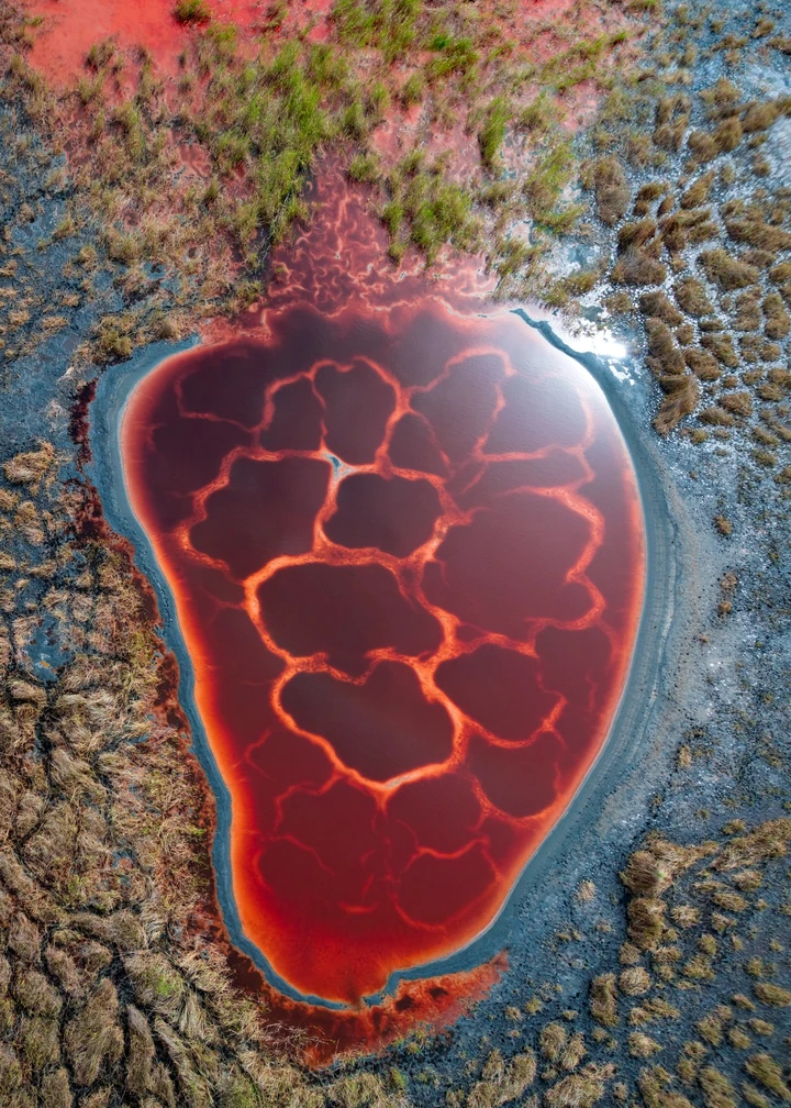 在腾格里沙漠深处的无人之境,有一颗鲜红的,正在跳动的“地球之心”,这里没有人烟,在地图上也不容易找到它的位置。当穿过寂寞公路,踏上茫茫沙漠,会在某个沙丘上看到一片炽热的红色,它在地表上沸腾,就好像地球跳动的脉搏。这颗“地球的心脏”叫乌兰湖。