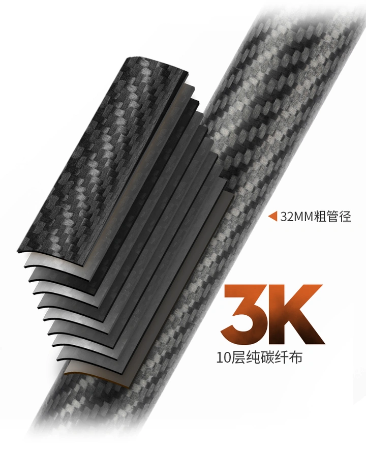 尽管【飞行独脚架】轻便易用,但其稳定性毫不逊色。采用足足10层3K斜纹纯碳纤编织的32MM粗脚管,