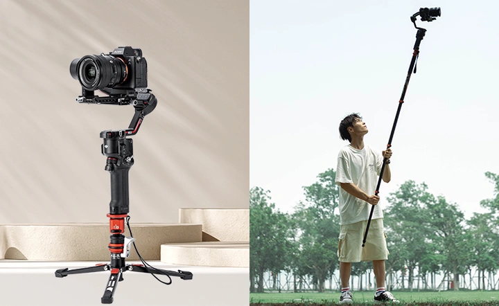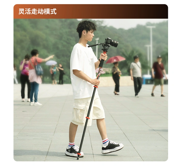 这时,很多摄影师会选择,直接上稳定器,可是稳定器具有一定份量,长期手持非常辛苦劳累,那这是就需要一个更灵活而轻量化的设备,能很好地承接稳定器的重量。