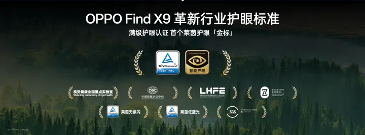 暗光也护眼,全天都通透。OPPO Find X9 的这块护眼好屏的显示素质同样出色:3600nit 超高亮度配合太阳显示技术,确保画面清晰可见;全链路原彩 ProXDR 和杜比视界,带来鲜活生动的色彩表现;120Hz 高刷并覆盖晶盾玻璃,同时支持湿手触控,兼顾流畅触感与耐用性。OPPO Find X9系列的 1nit 明眸护眼屏,以顶级显示素质、满级护眼表现,斩获包括首个莱茵护眼金标在内的 8 大权威认证。