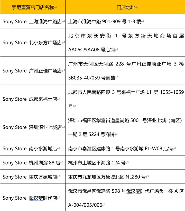 网页链接)或索尼中国微信公众号(微信号:sonycn_001)和索尼影像圈官方微信公众号(微信号:sonycn_002)或垂询以下门店。