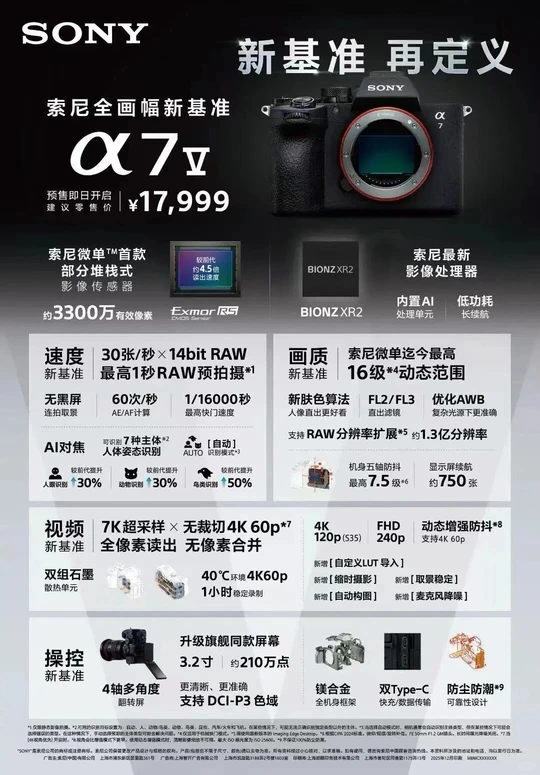除了上述特性,Alpha 7 V在续航方面也有显著提升。索尼并未更换电池型号,而是通过新一代处理器与芯片的高效协同,实现了更低的功耗与更持久的电力支持。这一能效优化策略,或将成为索尼后续机型的标配策略之一。