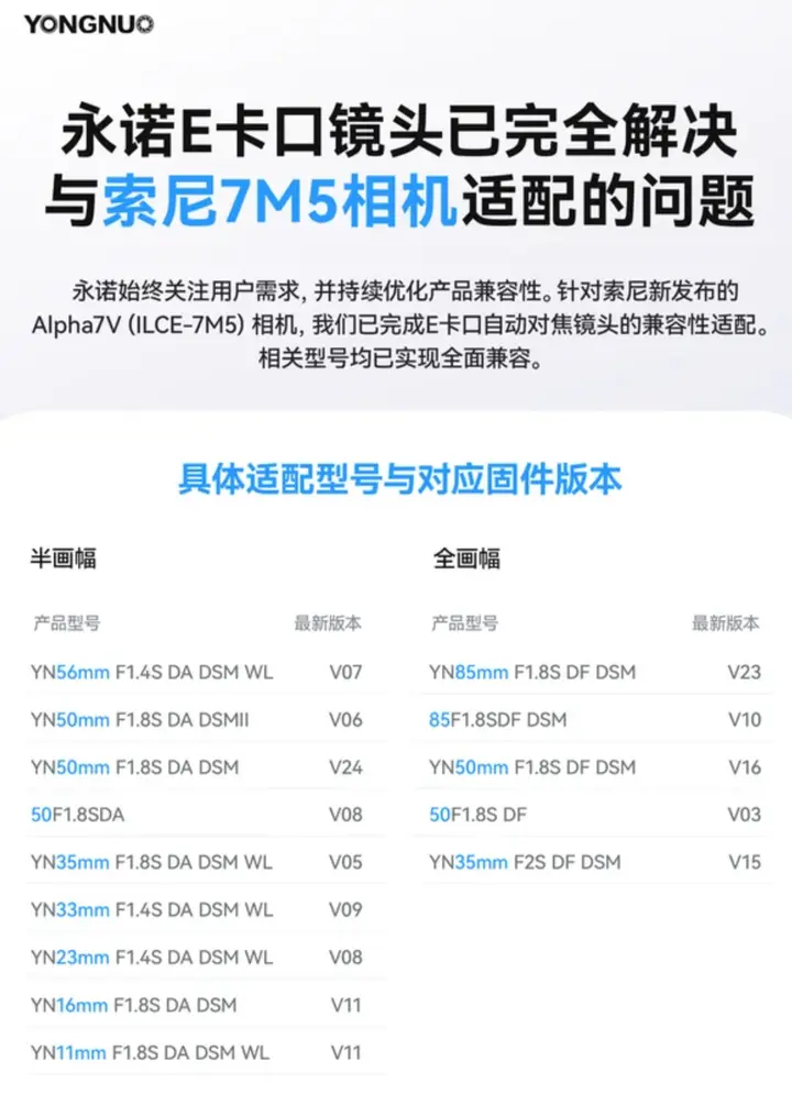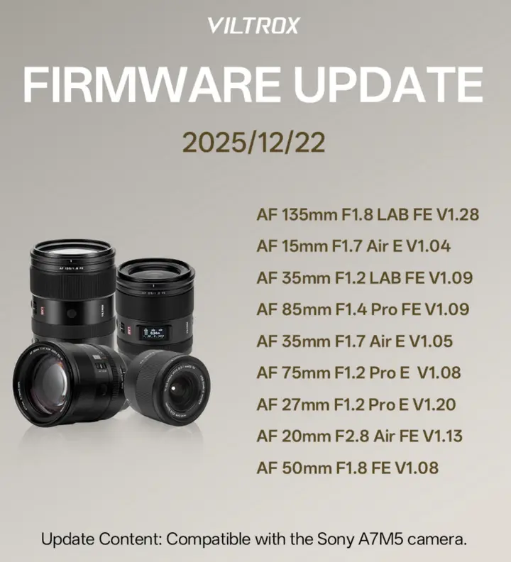 唯卓仕、永诺、美科等多款镜头升级固件,全面适配索尼Alpha 7 V