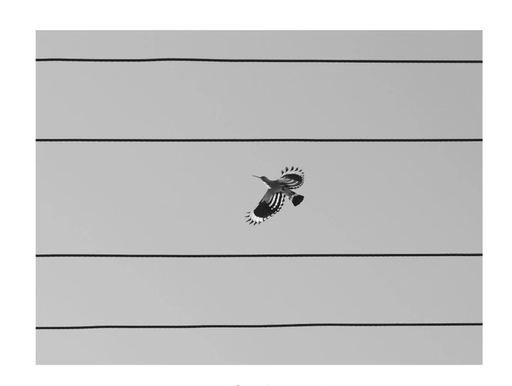 作品以黑白调的对比、动与静的构图交织,呈现视觉的‘有限’与心理的‘无界’。本期分享的作品中我最喜欢的是那张啄木鸟从电线旁掠过,而电线刚好将画面分割的瞬间,产生一种封闭界限感。风景的边界是客观存在的限制,而心境的无限是主观意识的超越。就像那只飞翔的啄木鸟,人生的‘边界’或许无法消除,但‘心境’的广度与深度,永远由我们自己定义,即使身处被分割的空间,依然可以飞向心中的无限远方。”