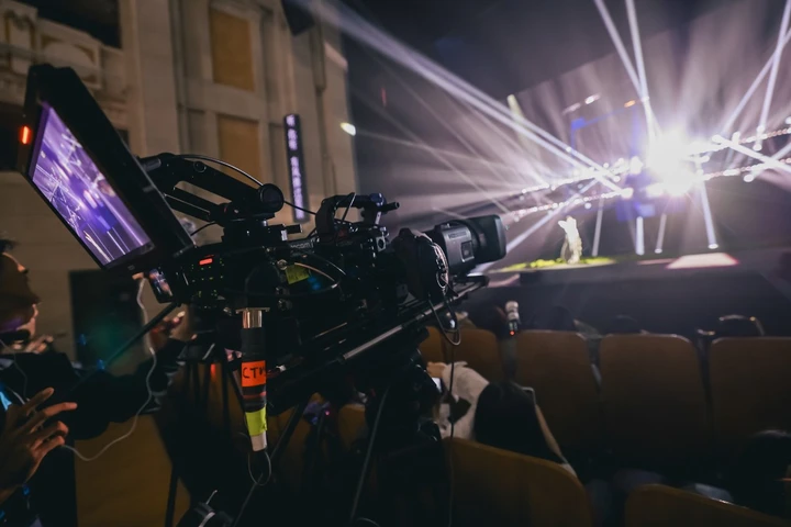 整场音乐会共部署了七个讯道化机位。主机位位于中央观众席后方,负责整体构图与舞台全景;两侧机位聚焦演员与舞者的情绪特写;轨道机位沿舞台前沿移动,用于捕捉节奏变化;摇臂机位提供俯拍与空间透视;另有观众区与远距长焦机位负责氛围与纵深的捕捉。
