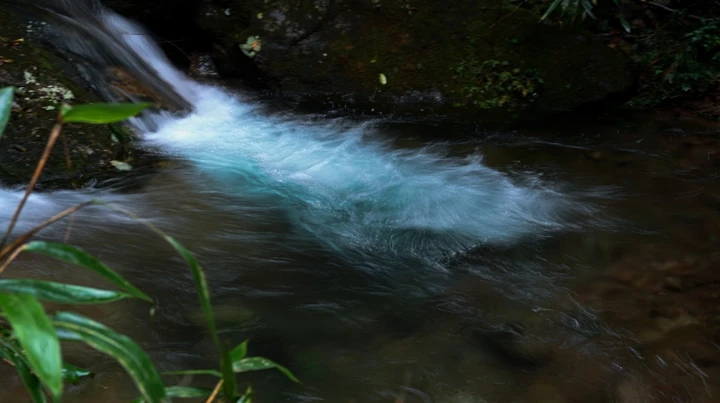 初循溪涧,但见素练垂霄;