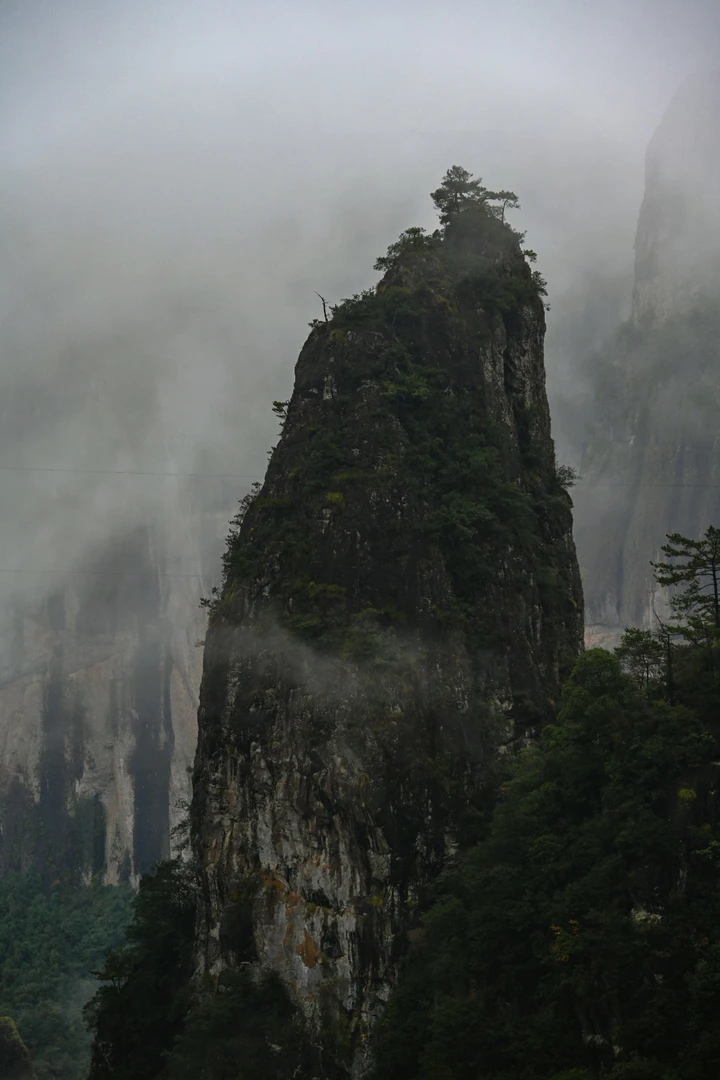 去时朝霭沉沉,午仍雾迷山巅,纵不见寰宇,横不见游人。