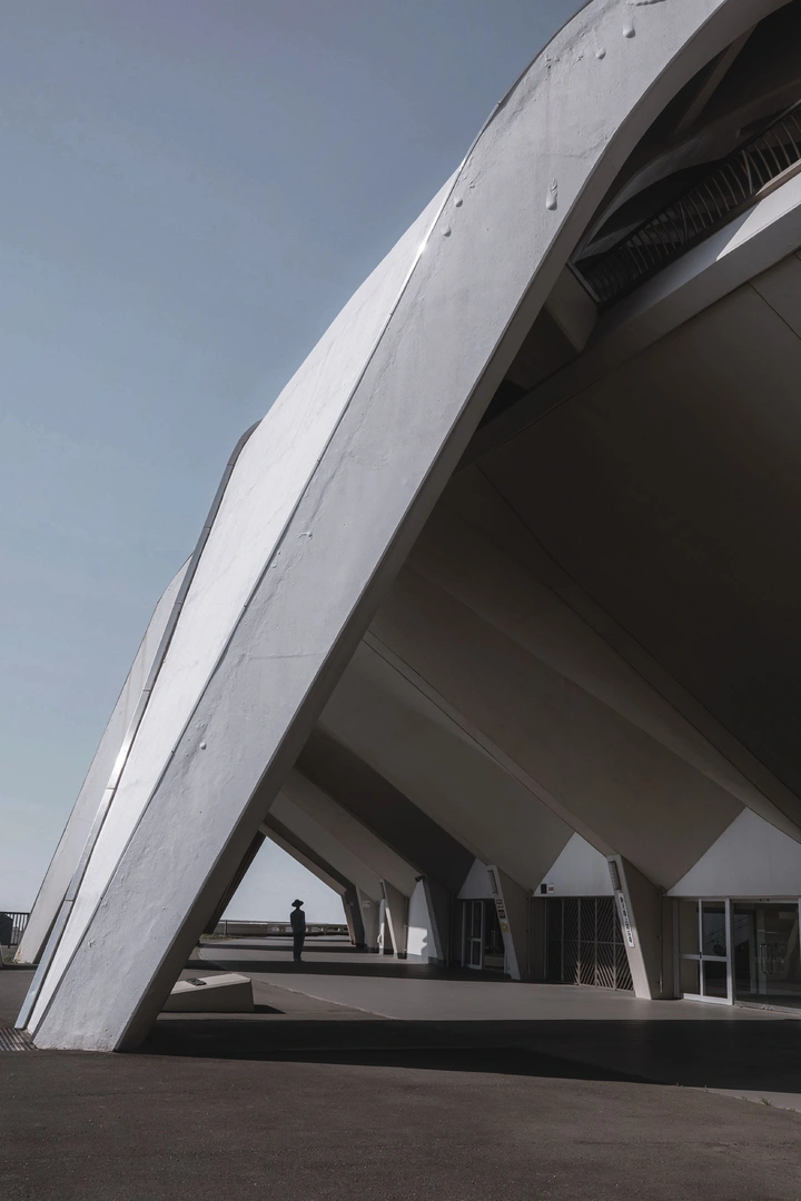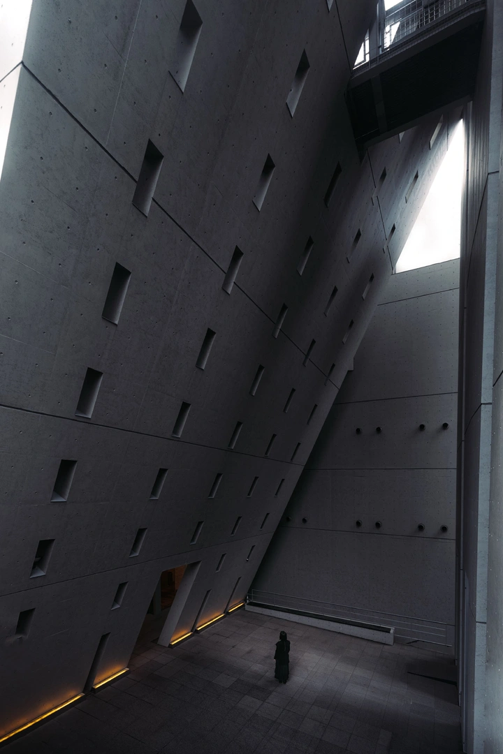 在建筑拍摄中,我使用最多的是 16–35mm。这个焦段既能完整呈现建筑的整体结构,又不会过度夸张透视,非常适合我对建筑秩序感和空间关系的表达。70–200mm则更多用于压缩空间、提取局部结构,让画面更加克制和抽象。