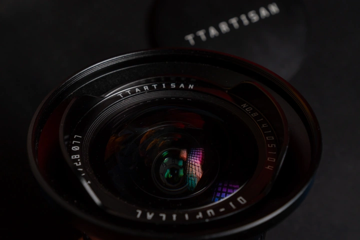 通常来说,这类超广角镜头受限于广视角设计,前组镜片不仅口径大、曲率高,对焦时还需整体移动(而非仅后组或内组镜片移动)。为了保证最优光学性能,前镜片往往会向外凸起,这也导致了滤镜安装不便的普遍问题。而铭匠这枚镜头则巧妙解决了这一痛点——其镜头盖可直接拆分为滤镜支架,无需额外配件,就能轻松套上⌀77规格的常用滤镜,实用性拉满。