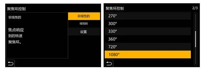 ● 对焦环旋转方向可调,MF模式下支持线性/非线性控制切换