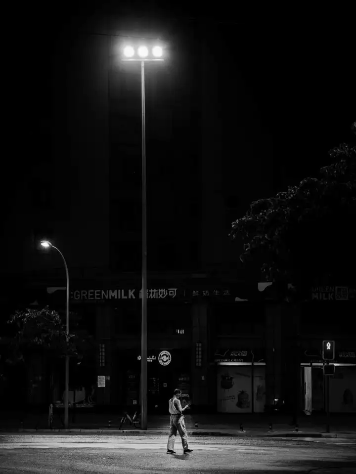 - 路灯也可以:除了清晨和傍晚,凌晨或者深夜,人少时,利用路灯或者其他灯光也可以产生有趣的阴影