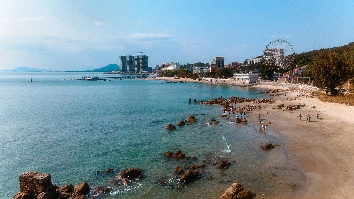 沙扒湾依山傍水,旅游资源丰富,景观层次独具魅力。海湾长达3公里,沙滩长2公里,宽长近200米,坡度平缓,整个海湾沙滩呈螺旋线弧展开,犹如明月般横亘在南海之滨。东西两侧有石山岬角拱卫,山上象形造型众多,密林环抱,海滩水质清澈,坡度平缓,沙质洁净。