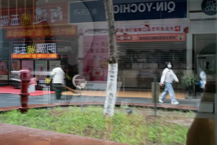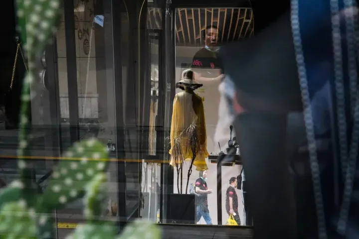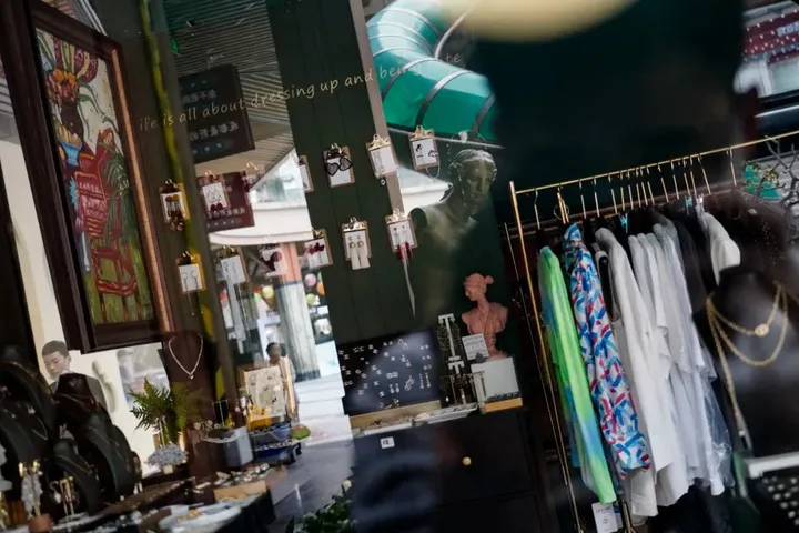 银泰城的服装店,等待一个行人出现在画面中,经过我身边的时候她刚好抬头看我,还好口罩是浅色的,要不然可能就看不清轮廓了。
