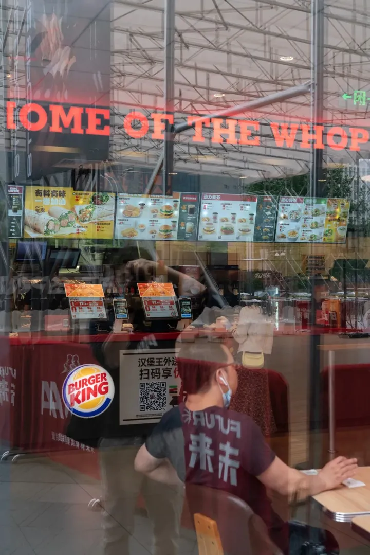 坐在汉堡王的这个小哥,我在其他的玻璃反射中也拍了几张他的照片,但是感觉只有这张最好,自己的镜像以及后面穿裙子买早餐的小姐姐,加上五颜六色的颜色,就像一个万花筒。