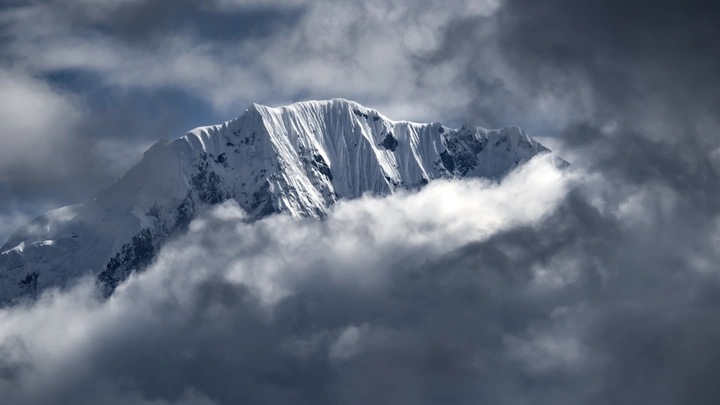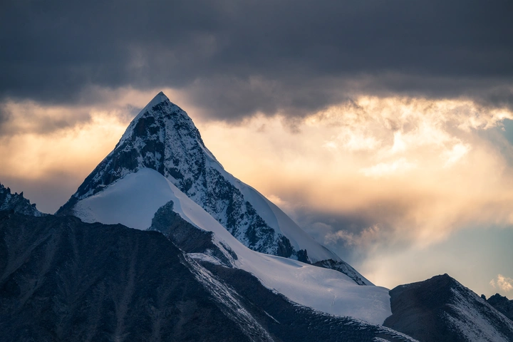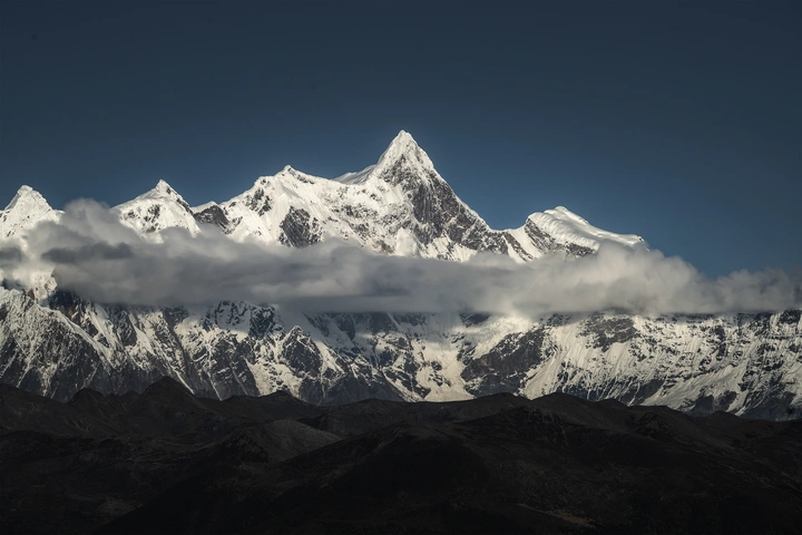 被长焦拉近的措托塔则雪山以及压缩在它身后的云层