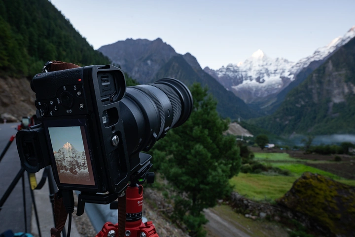 穿行山峦中,大部分时候我们离雪山非常远,雪山的轮廓显得很小,这时远至600mm端的可选择范围的超远焦距就优秀地挺身而出。在临时停车的短时间内,只能用手持拍摄,而这枚镜头的四档防抖功能可以让我根据不同拍摄环境调整防抖设置,以确保得到清晰的画面。这对于行驶途中使用超长焦镜头来说,尤为重要。
